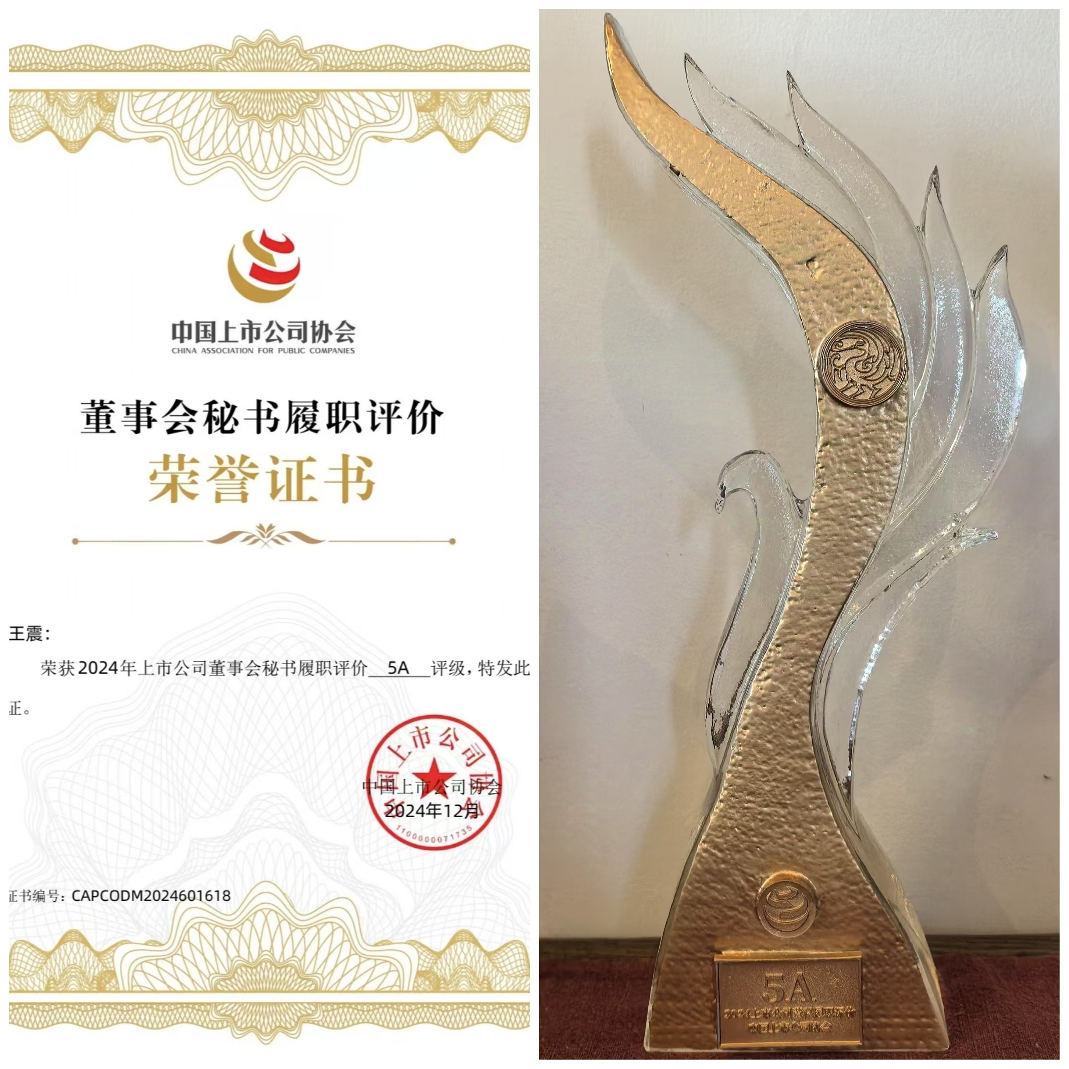 近日,中国上市公司协会发布“2024上市公司董事会秘书履职评价”结果,中国中冶、中国建筑、中国神华等225家公司董事会秘书从1385家参评公司中脱颖而出,荣获5A评级,这是公司第二次获此殊荣。
